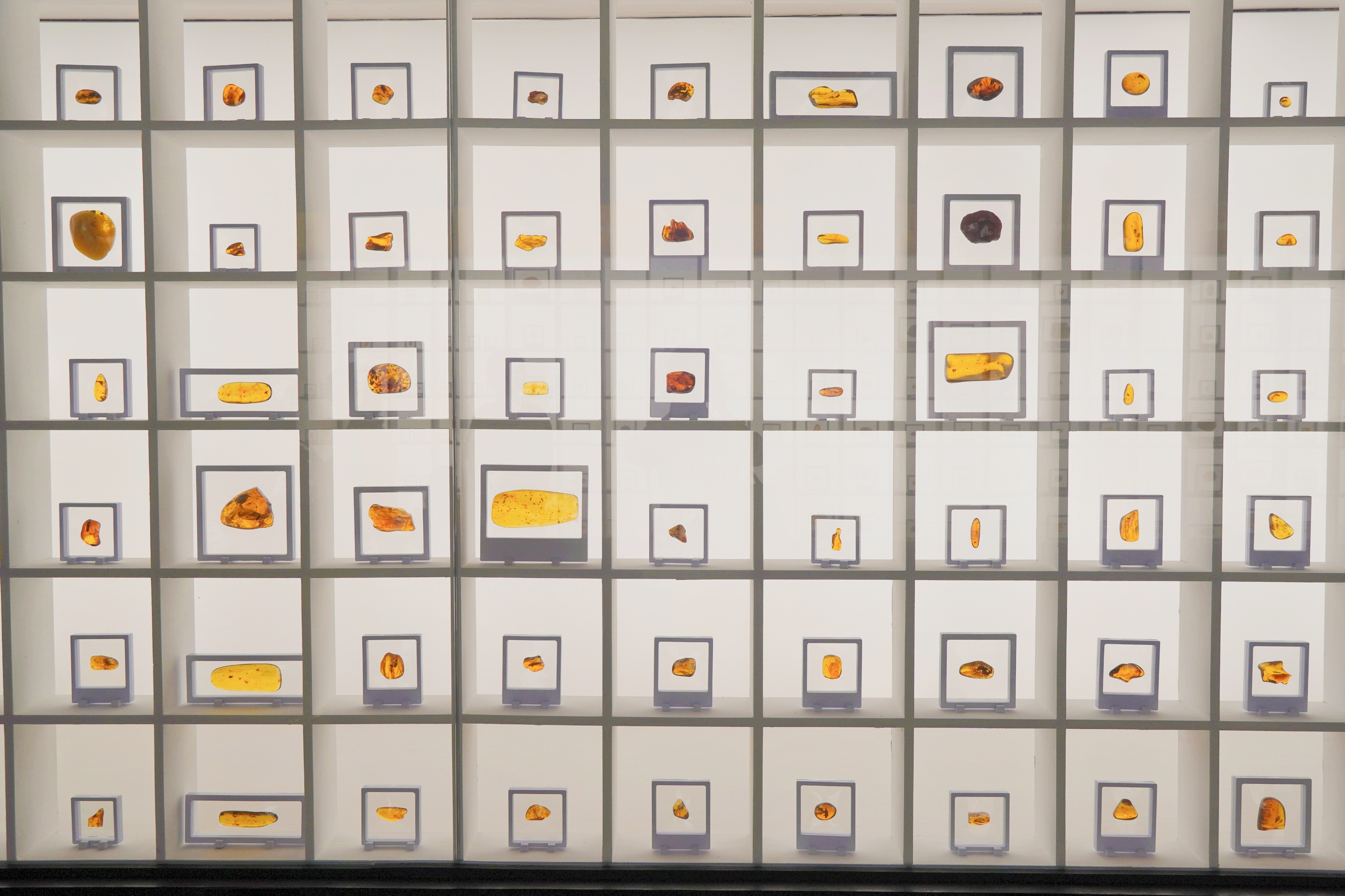 Photo shows amber fossils on display at the Guangdong Museum in Guangzhou city, south China's Guangdong Province. (Photo/Wang Yadie)