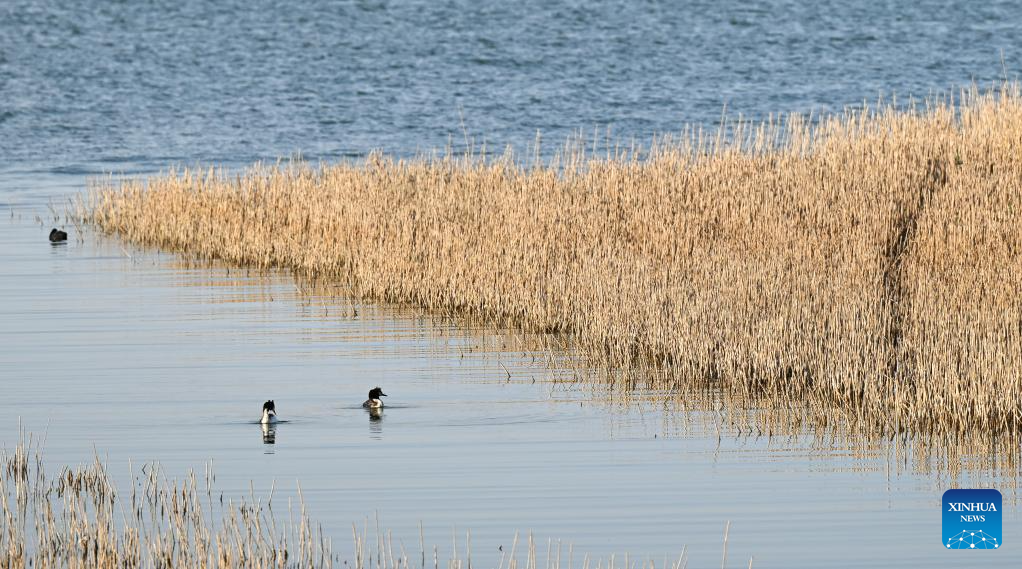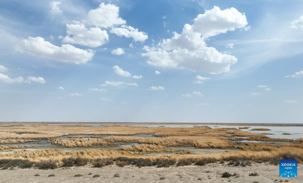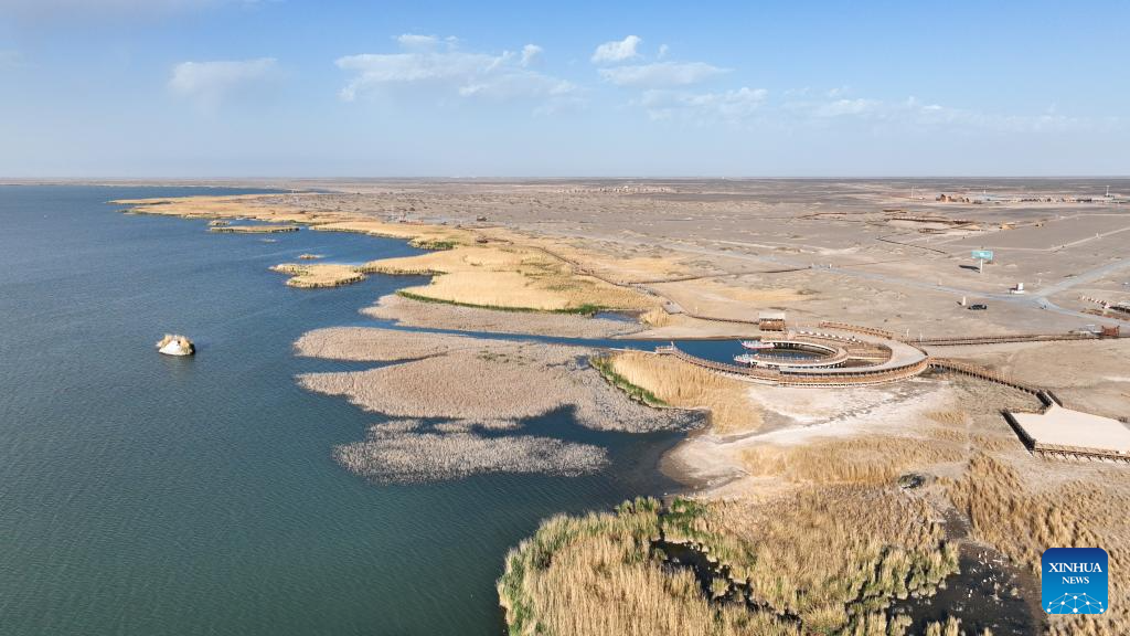 This photo taken on May 17, 2023 shows a view of Juyan Lake in Ejina Banner of Alxa League, north China's Inner Mongolia Autonomous Region. (Xinhua/Bei He)