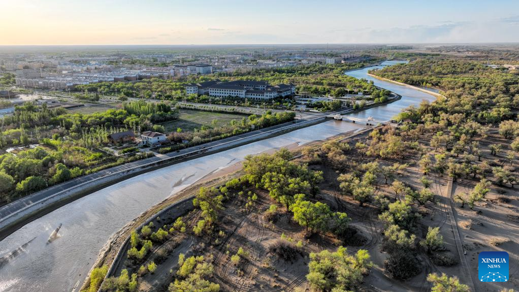 This aerial photo taken on May 16, 2023 shows the scenery in Ejina Banner of Alxa League, north China's Inner Mongolia Autonomous Region. (Xinhua/Bei He)