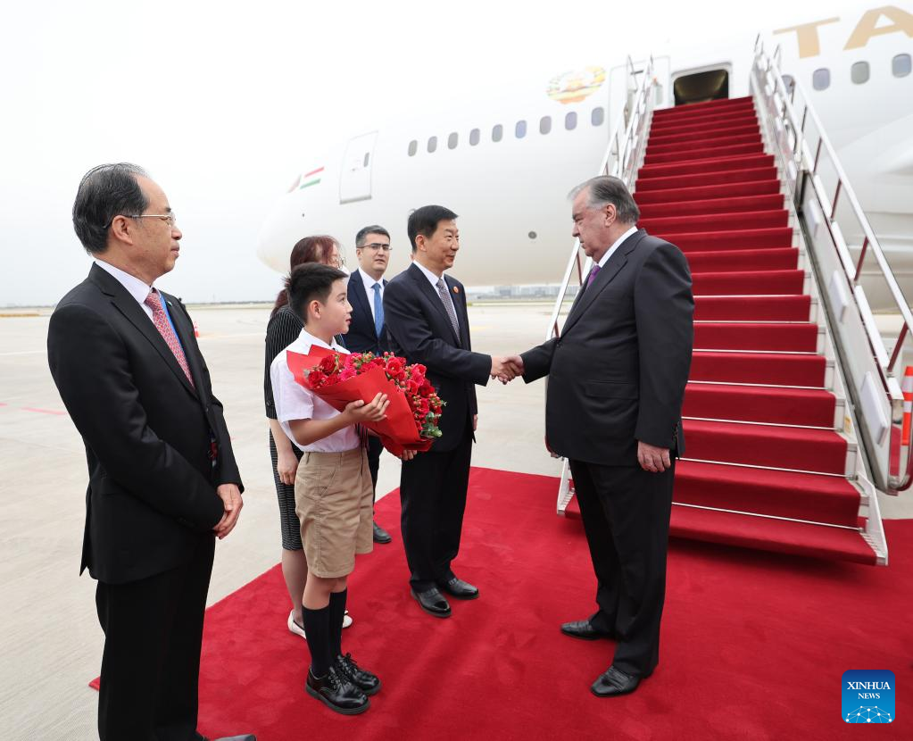 XI'AN, May 17 (Xinhua) -- Tajik President Emomali Rahmon arrived in Xi'an, northwest China's Shaanxi Province, on Wednesday afternoon for the China-Central Asia Summit, which is scheduled for May 18 and 19.