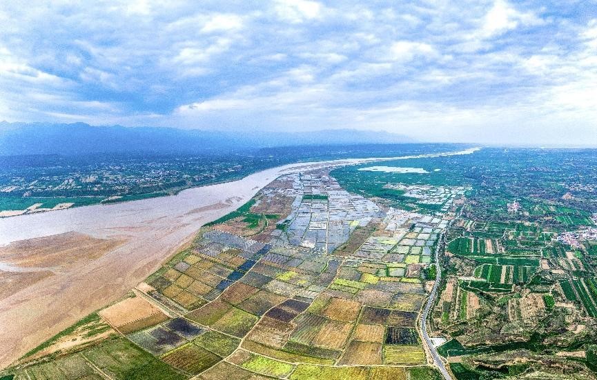 Photo shows a magnificent view of the Yellow River in Ruicheng county, Yuncheng, north China's Shanxi province, April 27, 2023. (People's Daily Online/Xue Jun)