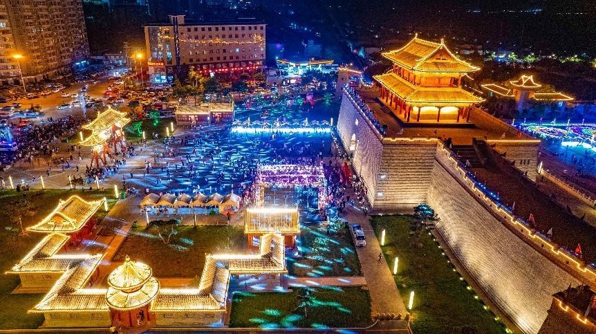 Photo taken on May 1, 2023 shows a beautiful night view in a cultural park in Yuncheng, north China's Shanxi province. (People's Daily Online/Chang Qi)