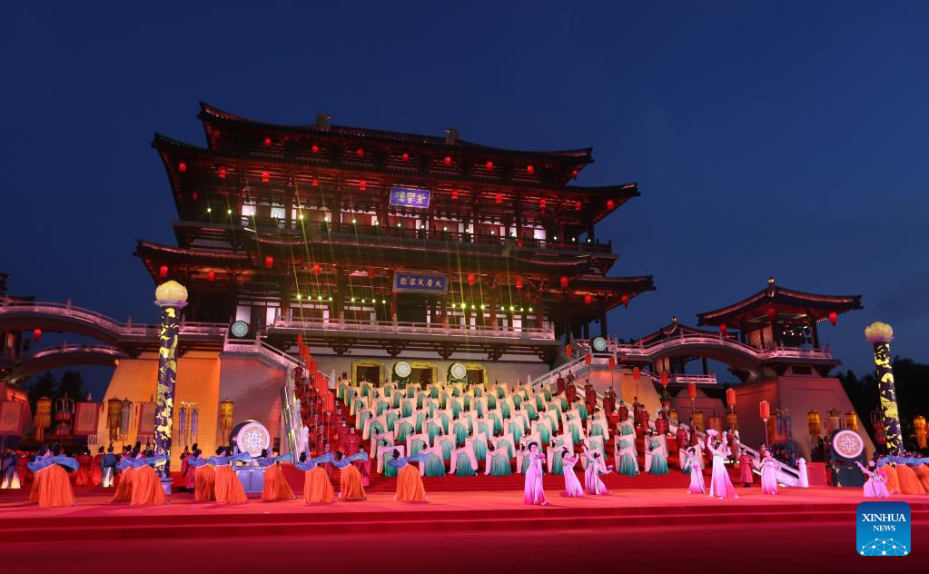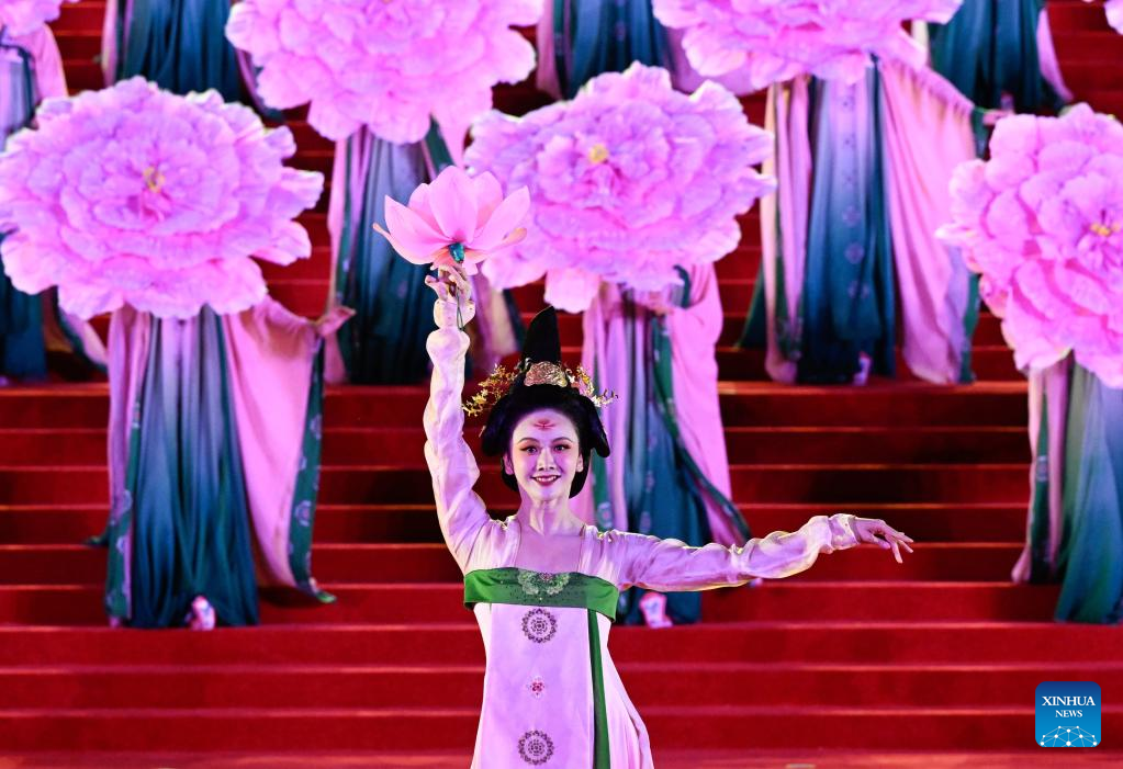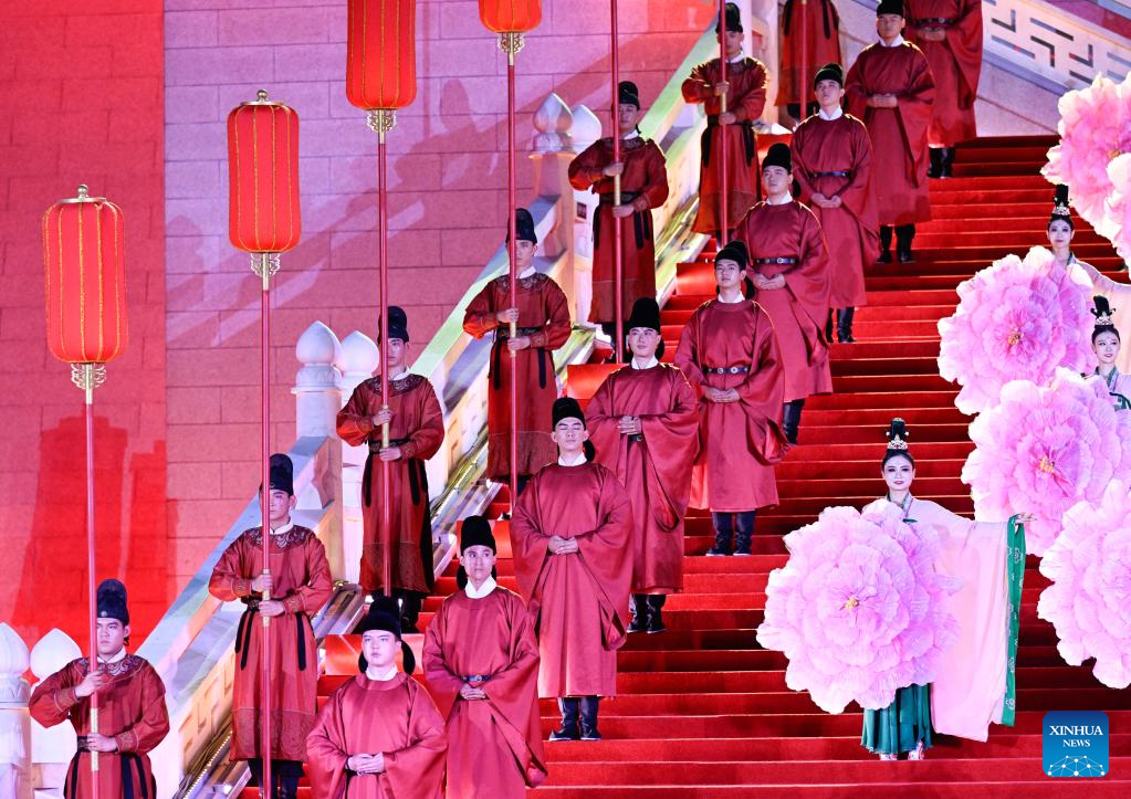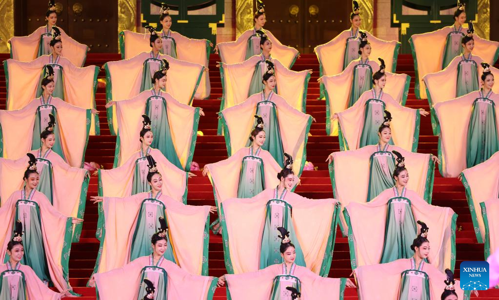 Artists perform during a welcome ceremony for Central Asian leaders and their wives attending the China-Central Asia Summit in the Tang Paradise in Xi'an, northwest China's Shaanxi Province, May 18, 2023. (Xinhua/Shen Hong)