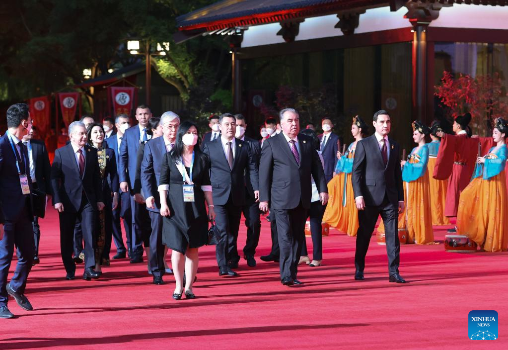 Central Asian leaders and their wives attending the China-Central Asia Summit arrive at a welcome ceremony in the Tang Paradise in Xi'an, northwest China's Shaanxi Province, May 18, 2023. (Xinhua/Xu Zijian)