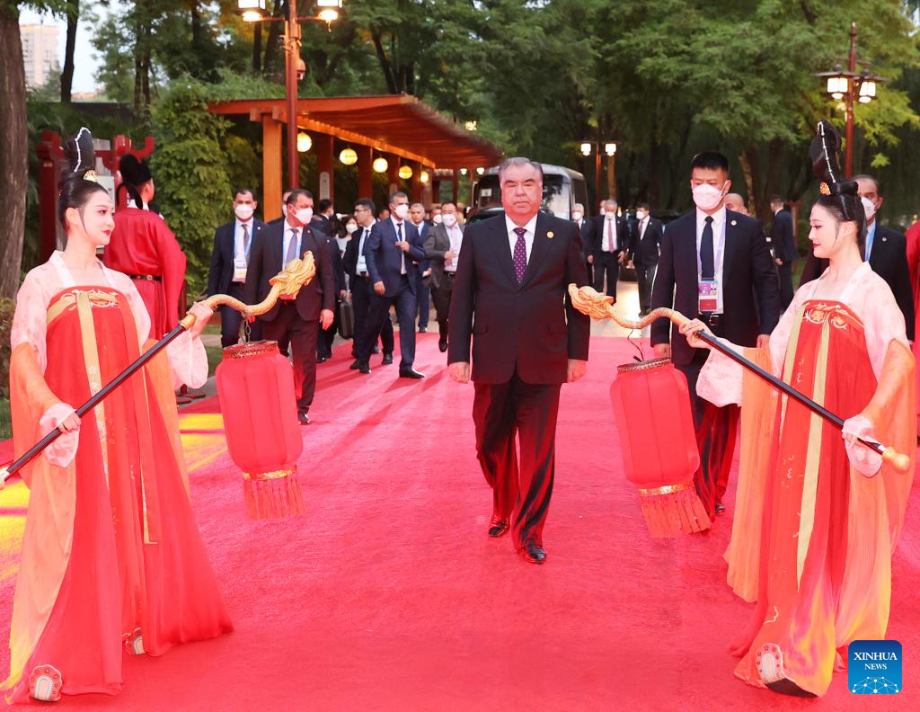Tajik President Emomali Rahmon arrives at a welcome ceremony for Central Asian leaders and their wives attending the China-Central Asia Summit in the Tang Paradise in Xi'an, northwest China's Shaanxi Province, May 18, 2023. (Xinhua/Xu Zijian)