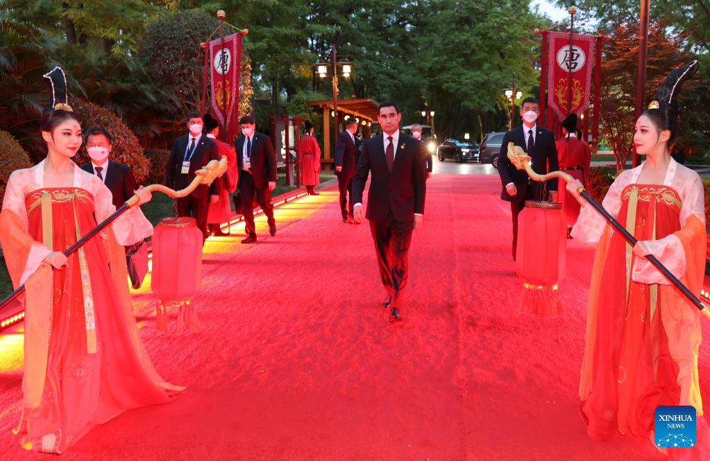 Turkmen President Serdar Berdimuhamedov arrives at a welcome ceremony for Central Asian leaders and their wives attending the China-Central Asia Summit in the Tang Paradise in Xi'an, northwest China's Shaanxi Province, May 18, 2023. (Xinhua/Xu Zijian)