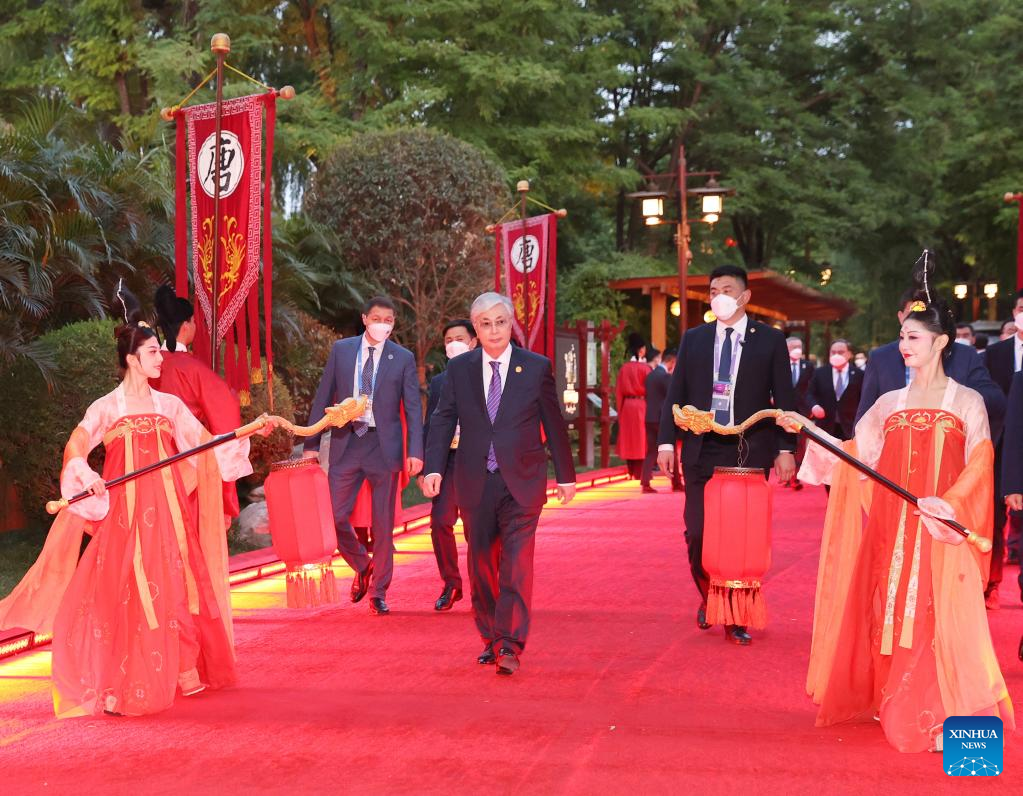 Kazakh President Kassym-Jomart Tokayev arrives at a welcome ceremony for Central Asian leaders and their wives attending the China-Central Asia Summit in the Tang Paradise in Xi'an, northwest China's Shaanxi Province, May 18, 2023. (Xinhua/Xu Zijian)