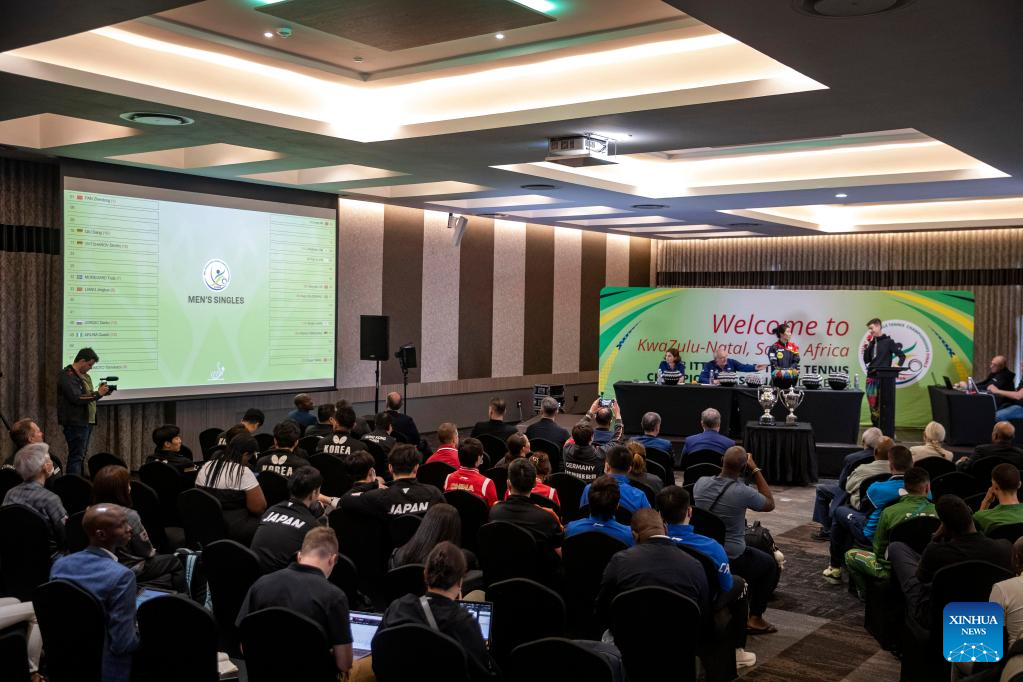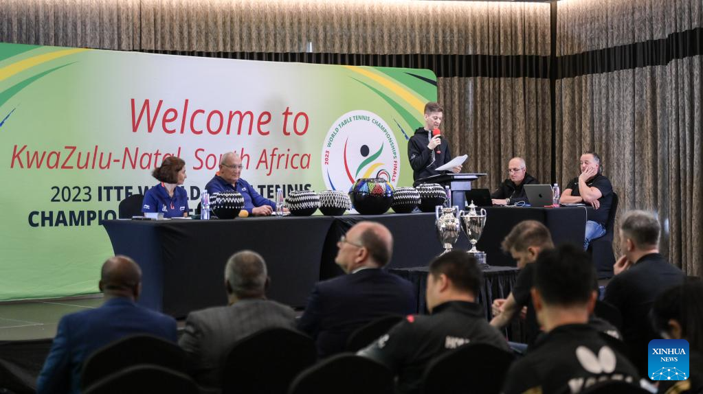 Photo taken on May 18, 2023 shows the draw ceremony for 2023 ITTF Table Tennis World Championships Finals in Durban, South Africa. (Xinhua/Zhang Yudong)