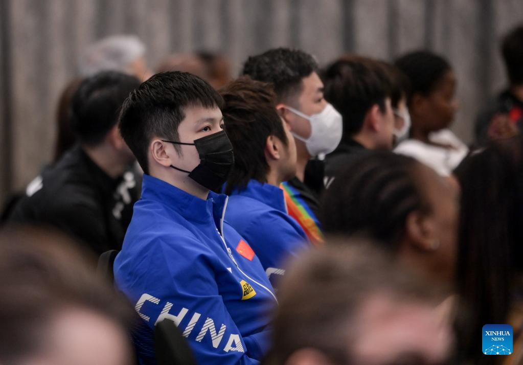 Fan Zhendong (front) of China is seen during the draw ceremony for 2023 ITTF Table Tennis World Championships Finals in Durban, South Africa, May 18, 2023. (Xinhua/Han Xu)