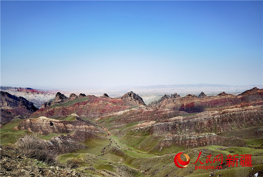 A picturesque scenery of the Danxia landform along the S101 highway in northwest China's Xinjiang Uygur Autonomous Region. (Photo/Liu Hua)
