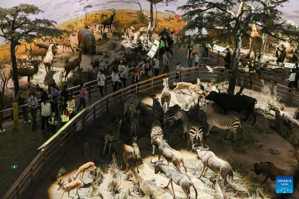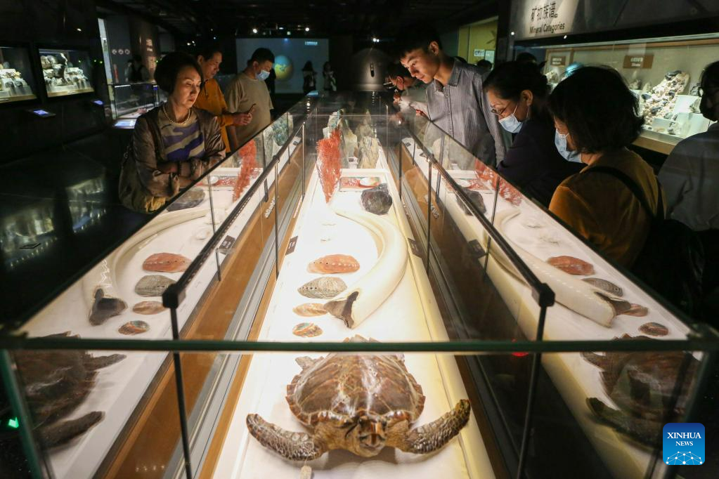 People visit the Shanghai Natural History Museum in Shanghai, east China, May 18, 2023. Shanghai Natural History Museum(SNHM) held a special event themed "Night at the SNHM" in celebration of the International Museum Day on Thursday. (Xinhua/Xin Mengchen)