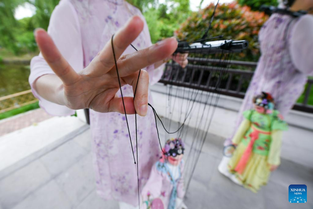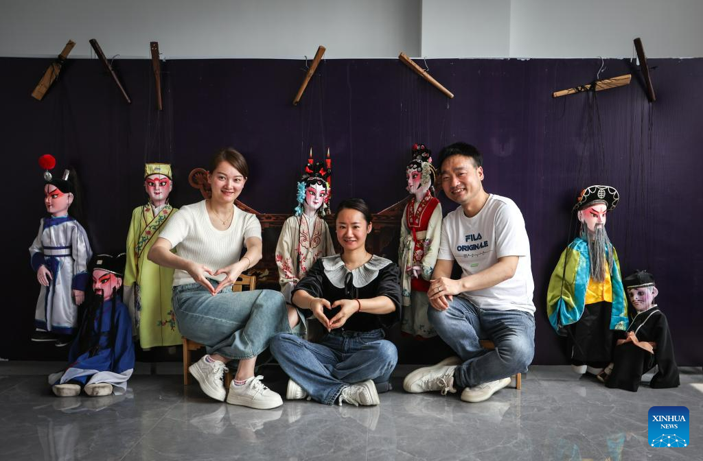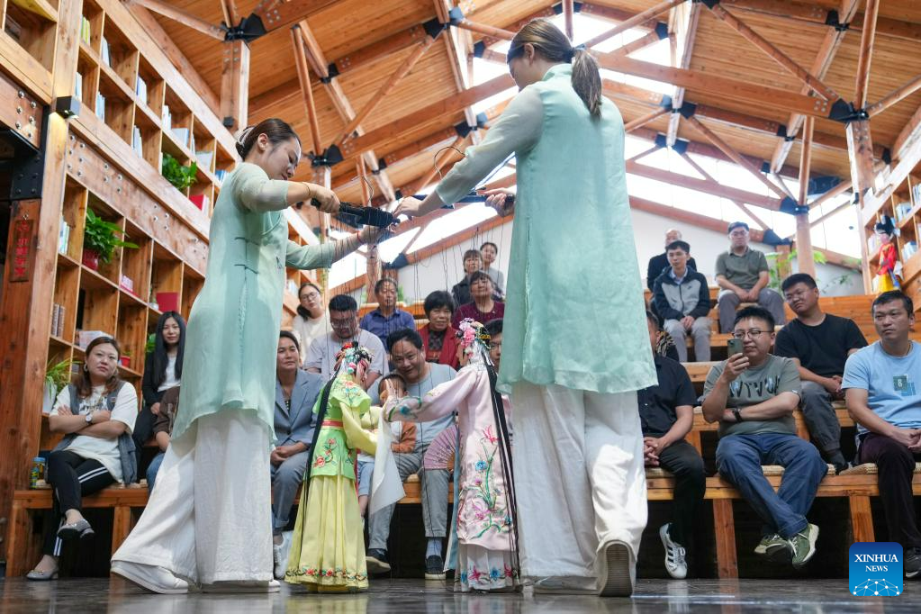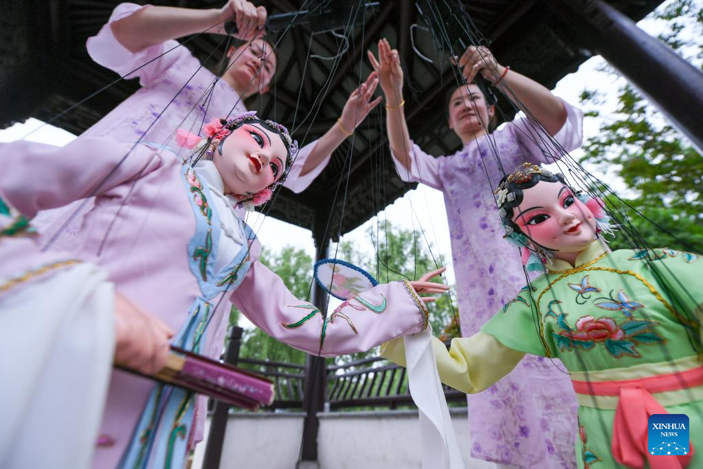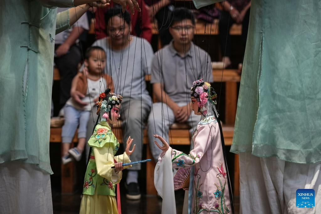 Sun Jing and Shi Jinfang perform puppet play of Kunqu Opera in Qidu Town, Wujiang District of Suzhou City, east China's Jiangsu Province, May 17, 2023. Kunqu, with a history of hundreds of years, is listed by the United Nations Educational, Scientific and Cultural Organization (UNESCO) as an intangible cultural heritage in 2001. (Xinhua/Li Bo)