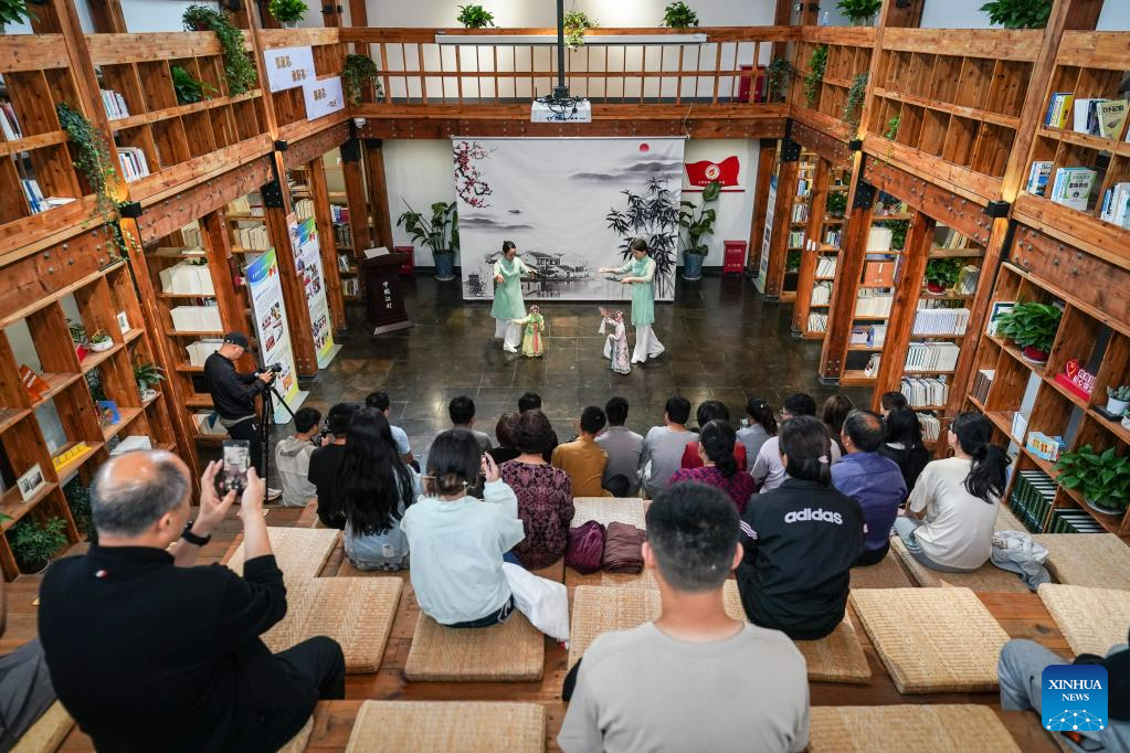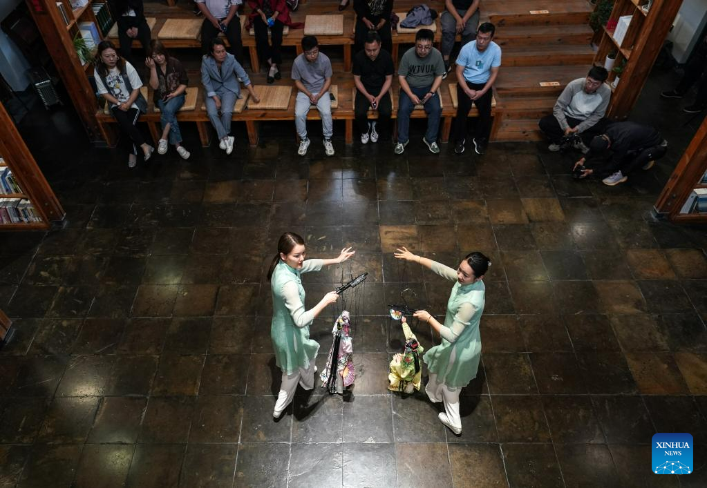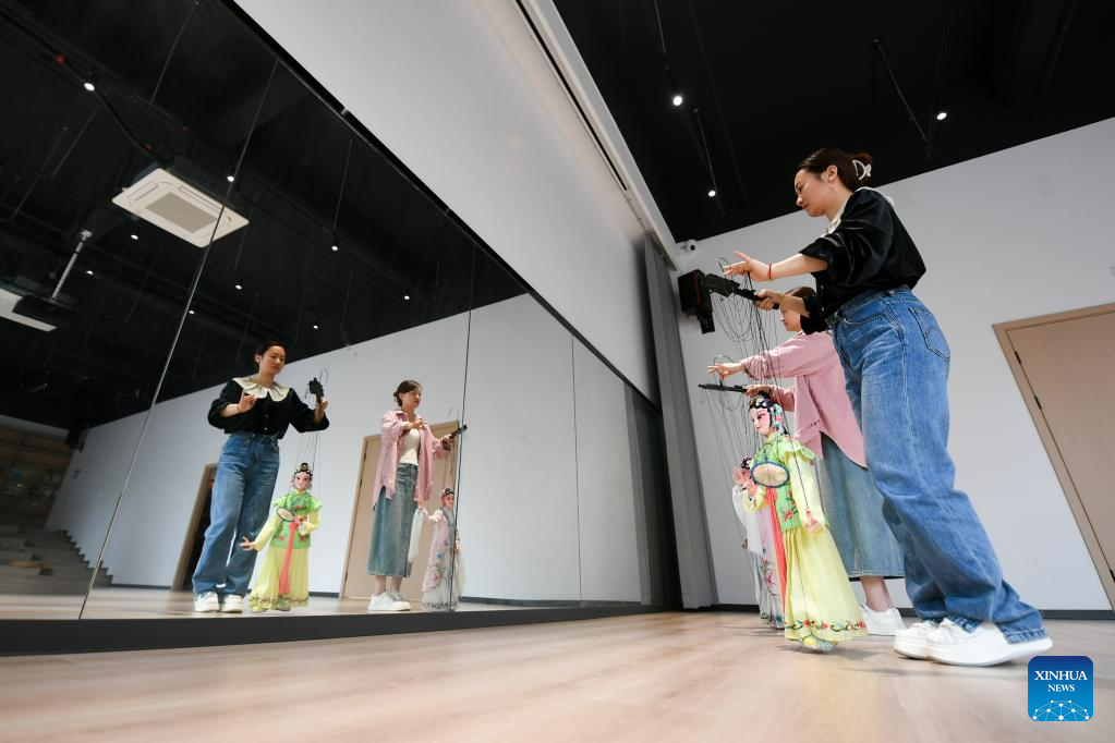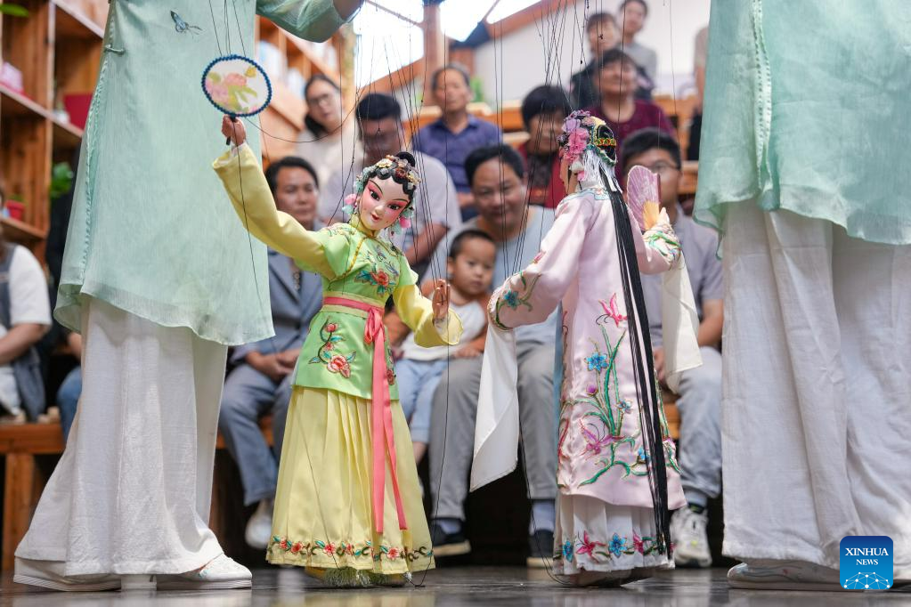 Sun Jing and Shi Jinfang perform puppet play of Kunqu Opera in Qidu Town, Wujiang District of Suzhou City, east China's Jiangsu Province, May 17, 2023. Kunqu, with a history of hundreds of years, is listed by the United Nations Educational, Scientific and Cultural Organization (UNESCO) as an intangible cultural heritage in 2001. (Xinhua/Li Bo)
