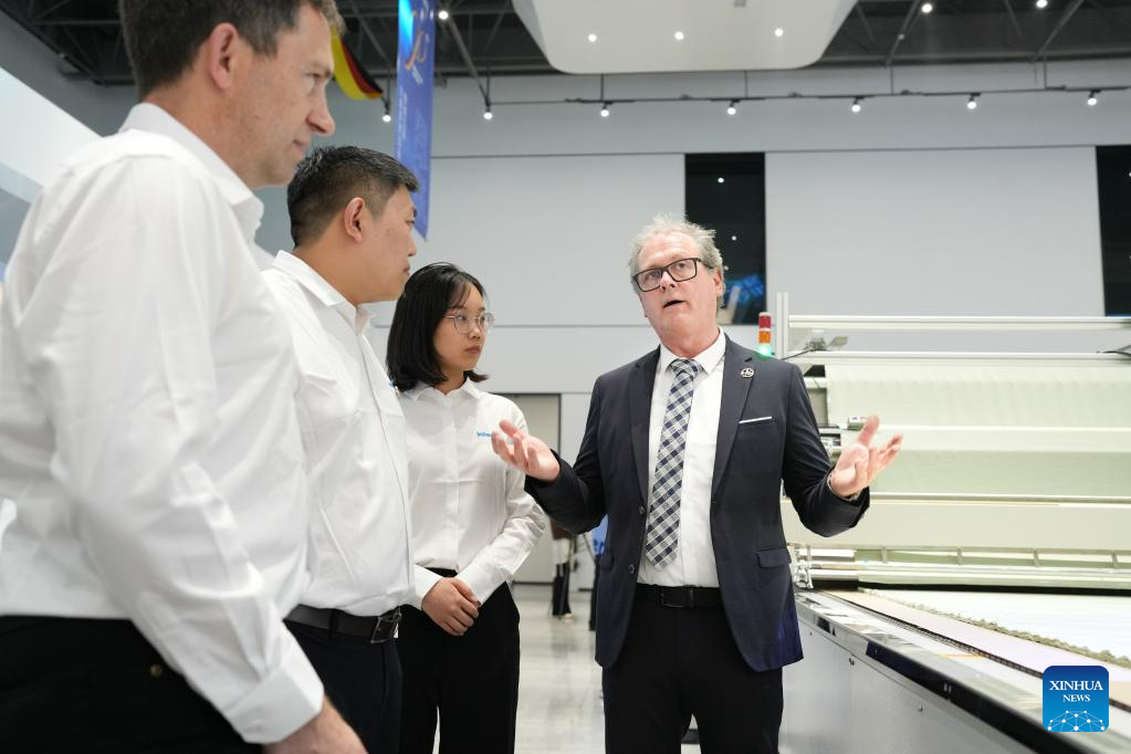 Managers from Germany and China exchange views on management at the TopCut-Bullmer Co., Ltd in Linhai, east China's Zhejiang Province, May 18, 2023. Bullmer, a German company founded in 1933, celebrated its 90th founding anniversary in Linhai on Thursday. (Xinhua/Weng Xinyang)