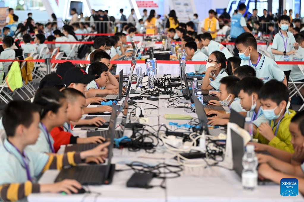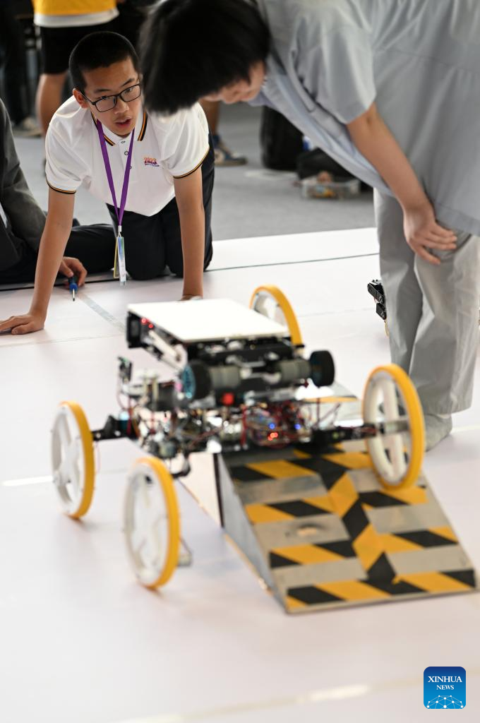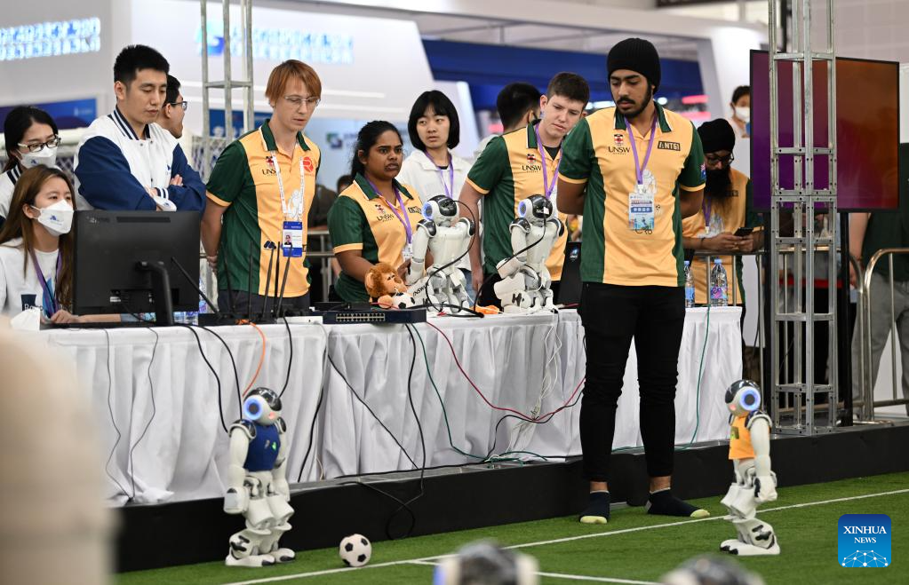 Participants prepare for a competition during the seventh World Intelligence Congress (WIC) in north China's Tianjin, May 20, 2023. The WIC, a major artificial intelligence (AI) event in China, kicked off here on Thursday. (Xinhua/Li Ran)