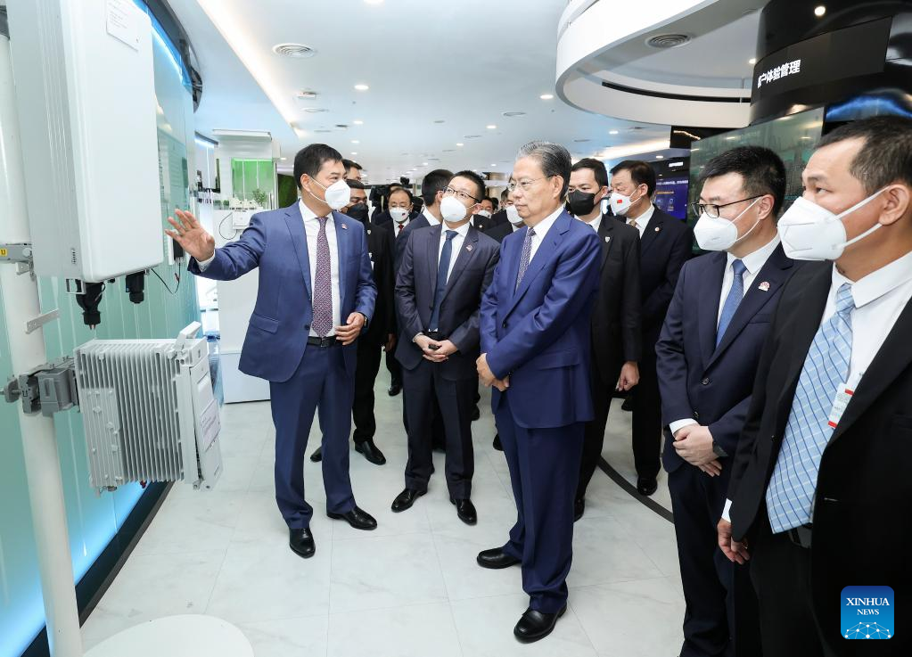 Zhao Leji, chairman of the Standing Committee of China's National People's Congress, visits the Asia-Pacific office of the Chinese telecom giant Huawei in Malaysia, May 19, 2023. At the invitation of Speaker of the lower house of parliament of Malaysia, Johari Abdul, Zhao paid an official friendly visit to the country from Thursday to Saturday. (Xinhua/Pang Xinglei)