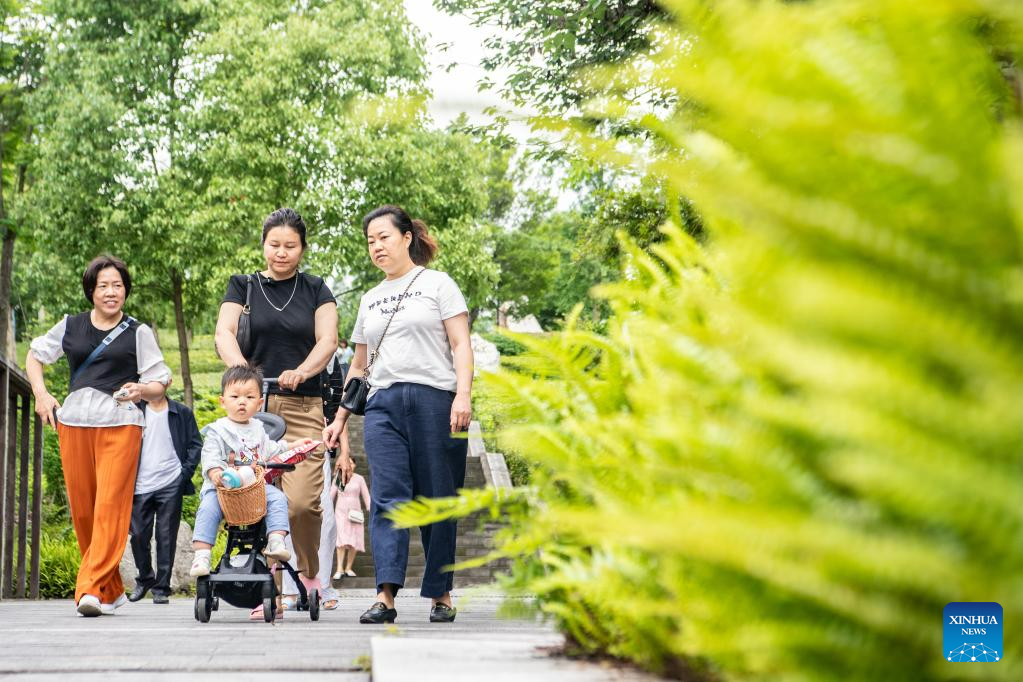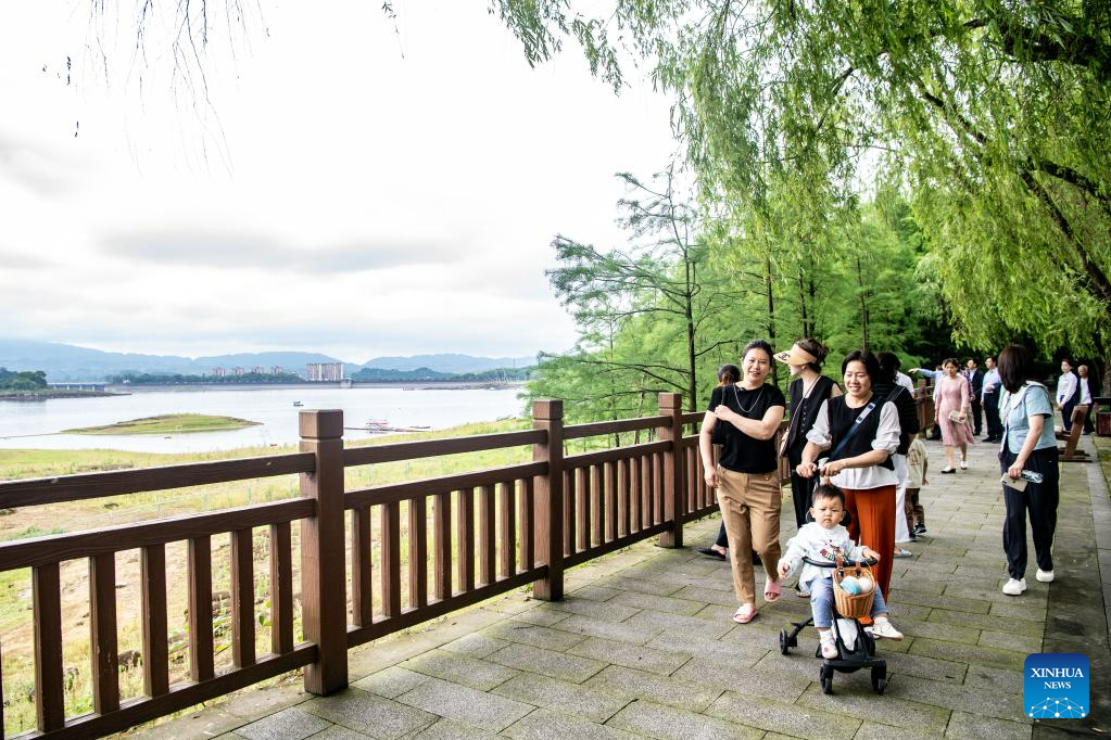 Tourists enjoy their leisure time at the Changshou Lake scenic area in Changshou District of southwest China's Chongqing, May 20, 2023. Located in Changshou District of southwest China's Chongqing, Changshou Lake is the largest artificial lake in southwest China, and is rich in natural resources.