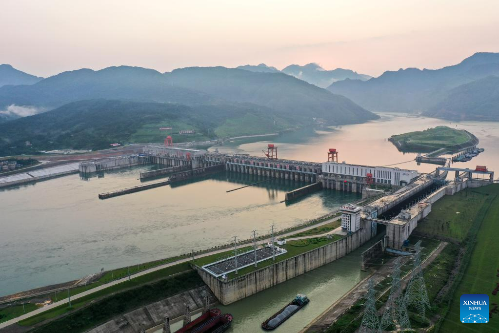 This aerial photo shows the Dateng Gorge water conservancy project in Guiping City, south China's Guangxi Zhuang Autonomous Region, May 20, 2023. (Xinhua/Cao Yiming)