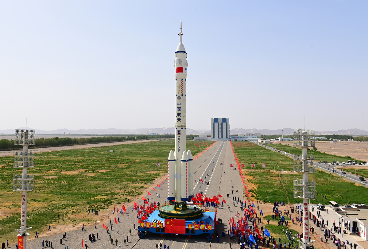 The Shenzhou XVI spacecraft and its carrier, a Long March 2F rocket, were moved to the service tower on Monday at the Jiuquan Satellite Launch Center in northwestern China's Gobi Desert, the agency said in a brief news release, adding that the spacecraft and the rocket will undergo final checks in the next several days.