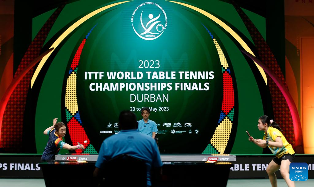 Chen Meng (L) of China hits a return during the women's singles round of 64 match against Jinnipa Sawettabut of Thailand at 2023 ITTF Table Tennis World Championships Finals in Durban, South Africa, May 22, 2023. (Xinhua/Wang Dongzhen)