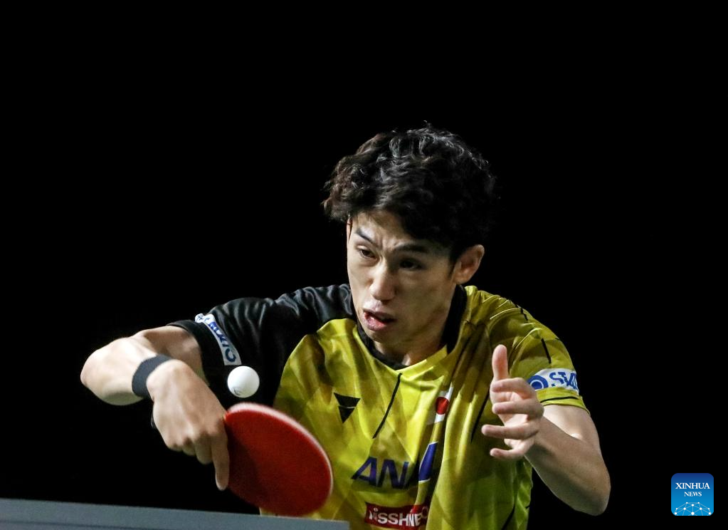 Yoshimura Maharu of Japan hits a return during the men's singles round of 64 match against Liang Jingkun of China at 2023 ITTF Table Tennis World Championships Finals in Durban, South Africa, May 22, 2023. (Xinhua/Li Yahui)