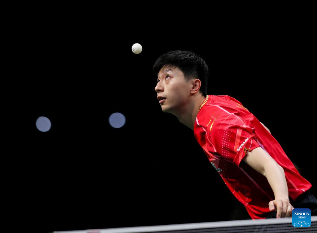 Ma Long of China serves during the men's singles round of 64 match against Eugene Wang of Canada at 2023 ITTF Table Tennis World Championships Finals in Durban, South Africa, May 22, 2023. (Xinhua/Zhang Yudong)