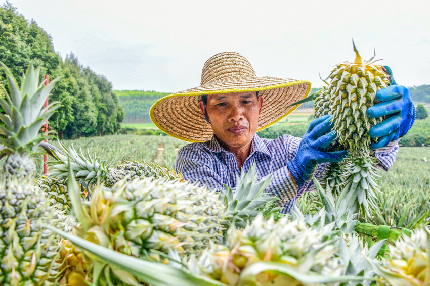 A worker picks pineapples in a field in Jiangnan district of Nanning city, southwest China's Guangxi Zhuang Autonomous Region.