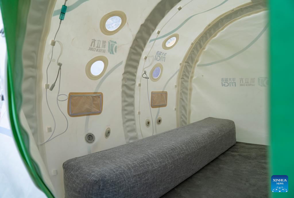 This photo taken on May 22, 2023 shows an oxygen cube at the mountaineering base camp in the Qomolangma National Nature Reserve in southwest China's Tibet Autonomous Region. (Xinhua/Sun Fei)
