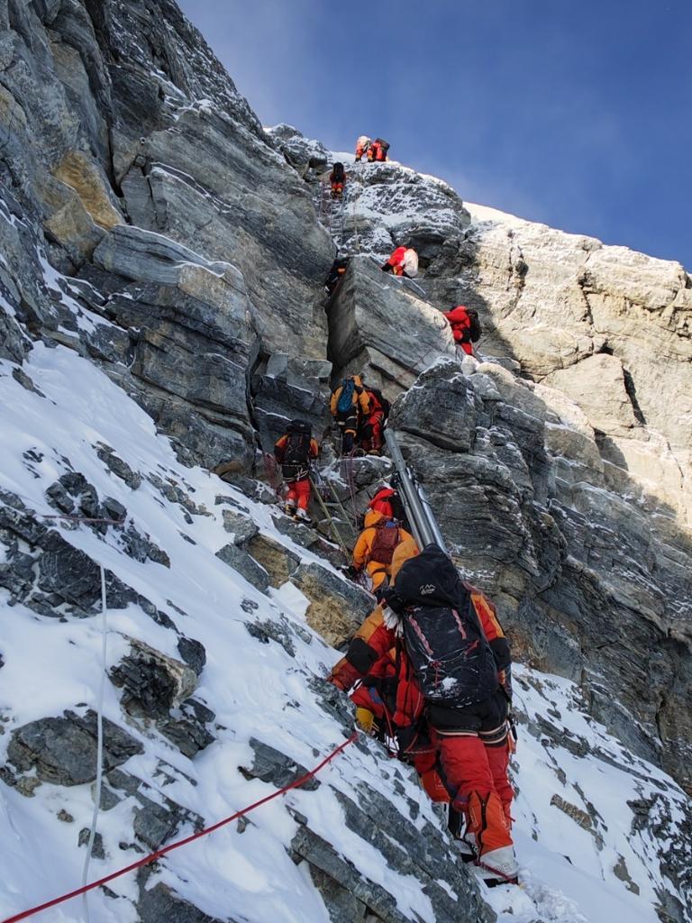 Members of a Chinese expedition team head for the summit of Mount Qomolangma on May 23, 2023. (Photo by Lhagba/Xinhua)