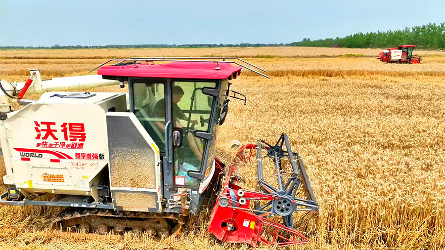 Farmers harvest winter wheat in Wangjiang county, east China's Anhui Province. (Photo/Chen Long)