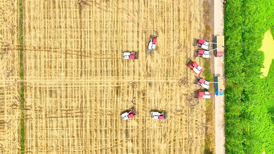 Winter wheat harvest season has started in Wangjiang county, east China's Anhui Province. Farmers are capitalizing on the fine weather to harvest wheat with agricultural machinery in vast fields, creating a spectacular sight.