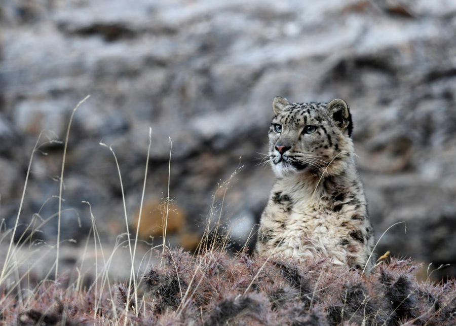 The snow leopard's white-gray coat spotted with black rosettes blends in perfectly with rocks. In recent years, the population of snow leopards in northwest China's Qinghai Province has risen to more than 1,200.