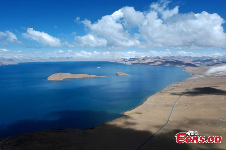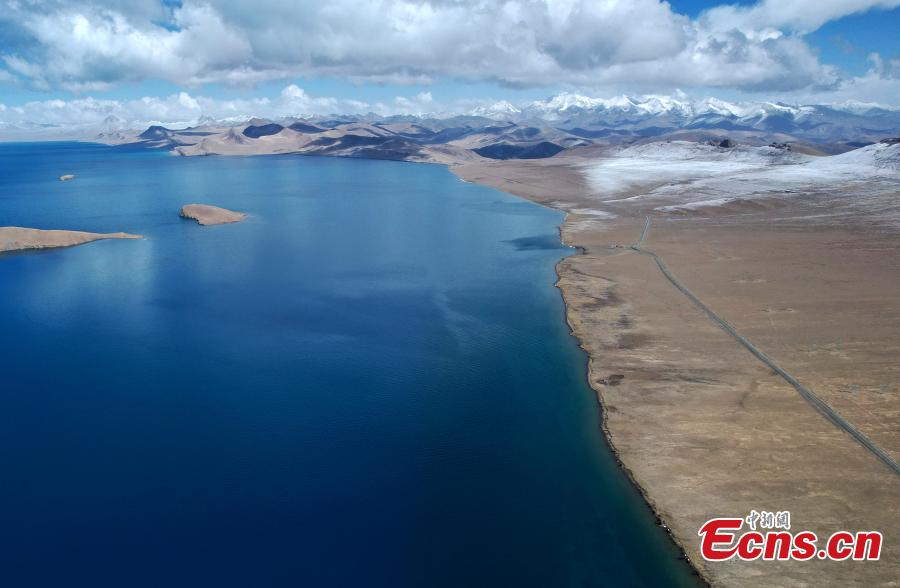 Breathtaking scenery of the Puma Yumco Lake with an altitude of about 5,000 meters in Shannan City, southwest China's Tibet Autonomous Region. Covering an area of 292 square kilometers , Puma Yumco literally means 'The Blue Jewel which is floating in the sky'. (Photo: China News Service/Li Lin)