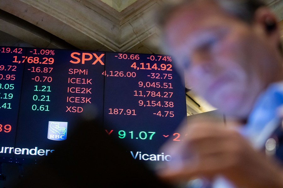 A trader works on the trading floor of the New York Stock Exchange (NYSE) in New York, the United States, on May 24, 2023. U.S. stocks ended lower on Wednesday. (Photo by Michael Nagle/Xinhua)
