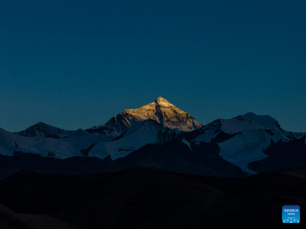 This photo taken in the morning of May 12, 2023 shows a view of Mount Qomolangma in southwest China's Tibet Autonomous Region. (Xinhua/Jigme Dorje)
