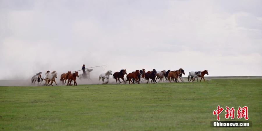 A herdsman drives horses on a grassland in Ergun, Hulun Buir City, north China's Inner Mongolia Autonomous Region. It's a spectacular scene watching horses race across the grasslands, a huge appeal for tourists and photographers. (Photo: China News Service/Yu Hai)