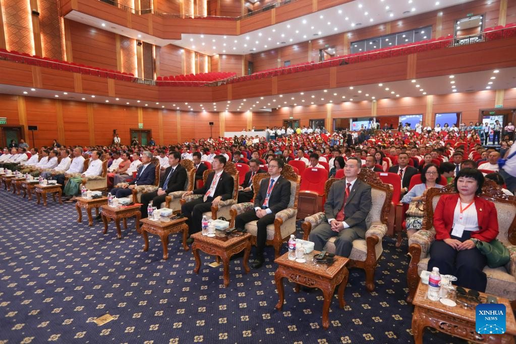 Participants attend the opening ceremony of the fourth Myanmar (Lashio)-China (Lincang) border trade fair in Nay Pyi Taw, Myanmar, May 25, 2023. The fourth Myanmar (Lashio)-China (Lincang) border trade fair kicked off in Myanmar's capital Nay Pyi Taw on Thursday. (Photo by Myo Kyaw Soe/Xinhua)