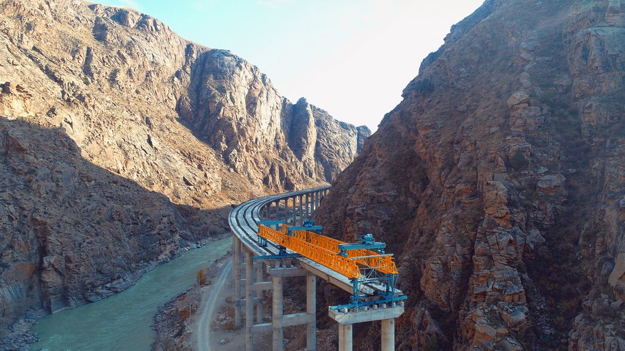 This aerial photo taken on Oct. 27, 2020 shows the construction site of the second phase of the north-south highway built by China in Kyrgyzstan. (China Road&Bridge Corporation/Handout via Xinhua)