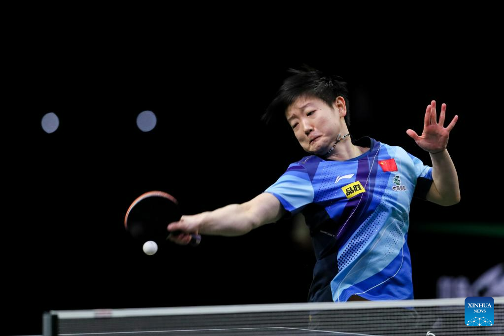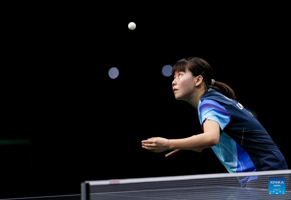 Han Ying of Germany hits a return during the women's singles quarterfinal against Sun Yingsha of China at 2023 ITTF Table Tennis World Championships Finals in Durban, South Africa, May 26, 2023. (Xinhua/Zhang Yudong)