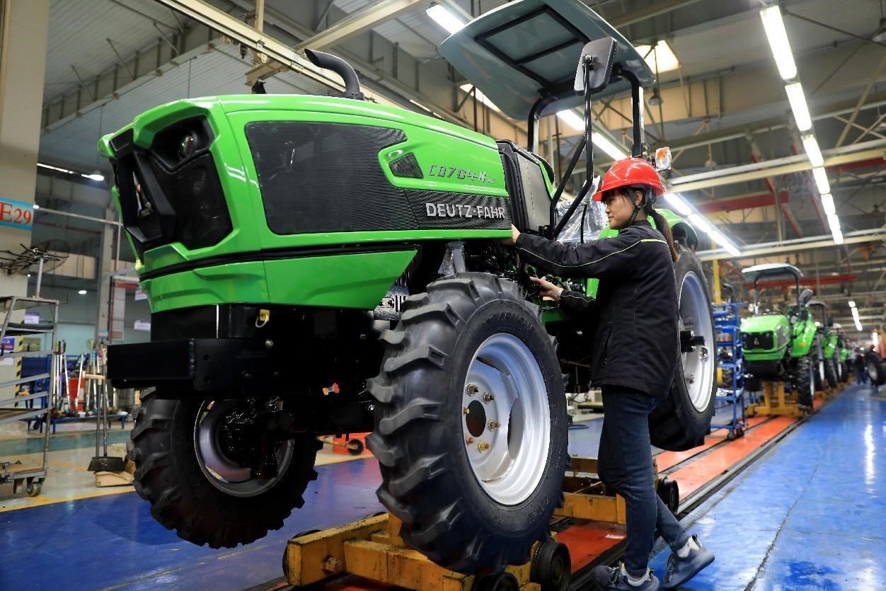 Tractors to be exported are being manufactured in a workshop of an enterprise in Linyi, east China's Shandong province. (People's Daily Online/Lin Haizhen)