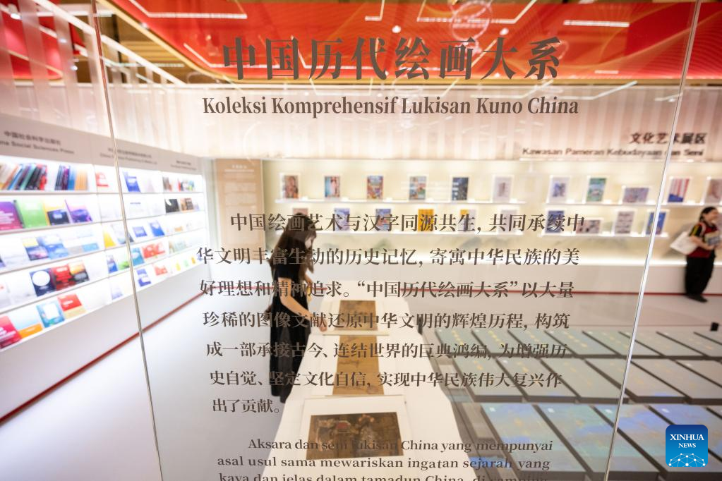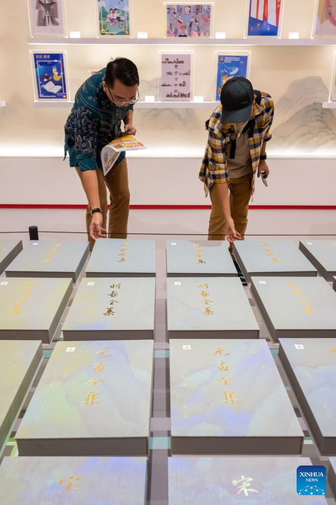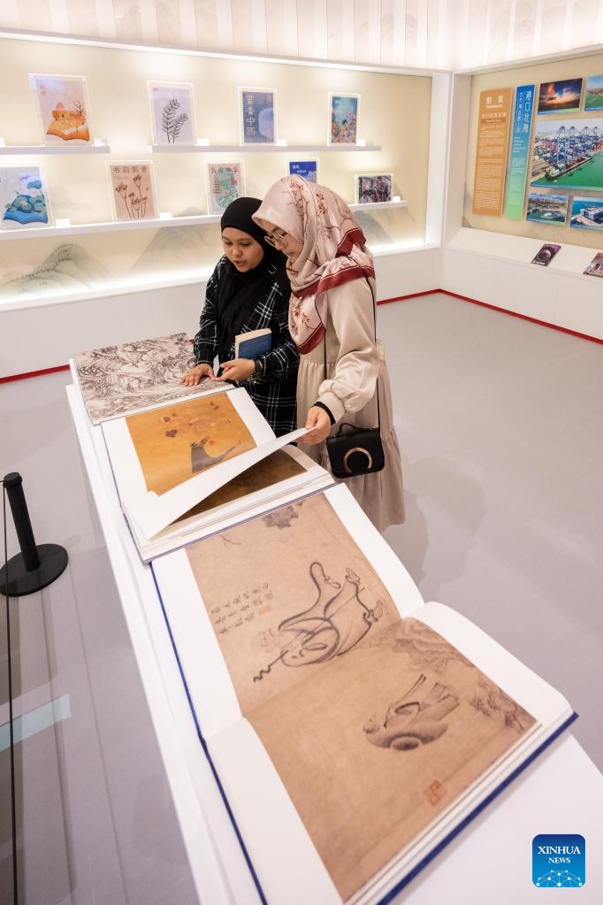 People visit the exhibition area of a comprehensive collection of ancient Chinese paintings during the 40th Kuala Lumpur International Book Fair in Kuala Lumpur, Malaysia, May 26, 2023. (Xinhua/Zhu Wei)