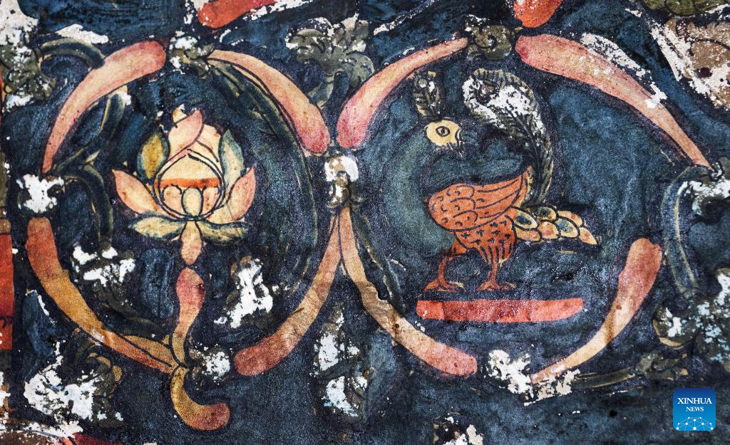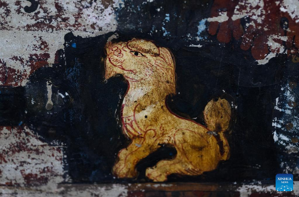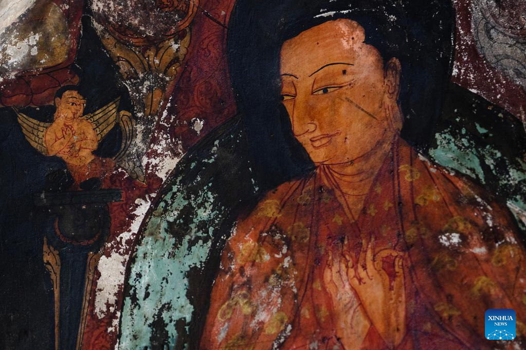 This photo taken on May 26, 2023 shows part of a mural in a grotto in Zanda County of Ngari Prefecture, southwest China's Tibet Autonomous Region. (Xinhua/Jigme Dorje)
