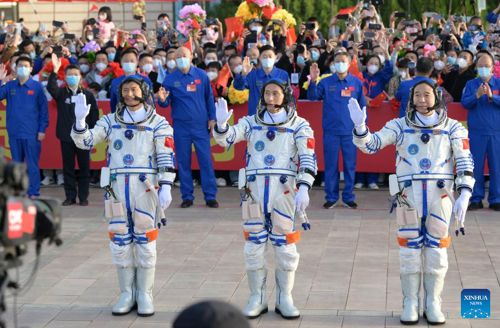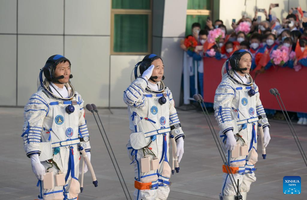 JIUQUAN, May 30 (Xinhua) -- A see-off ceremony for three Chinese astronauts of the Shenzhou-16 crewed space mission was held on Tuesday morning at the Jiuquan Satellite Launch Center in northwest China, according to the China Manned Space Agency.