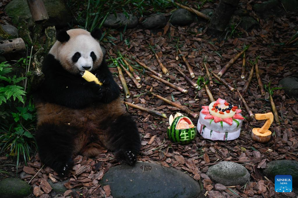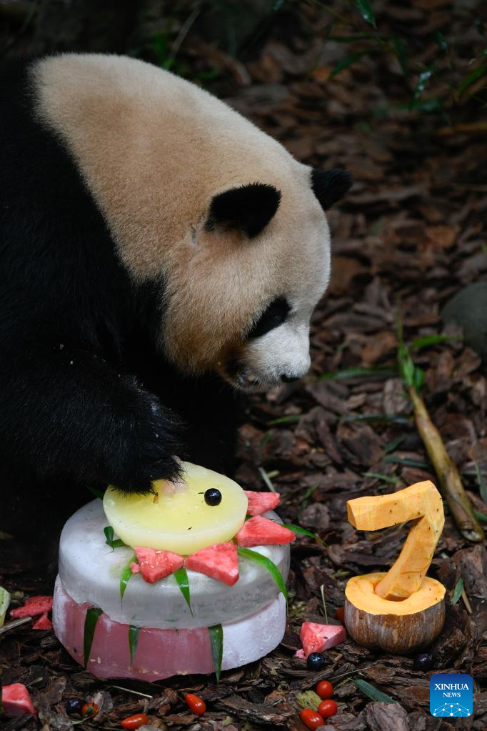 Giant panda Mei Lan celebrates 7th birthday in Chengdu, SW China