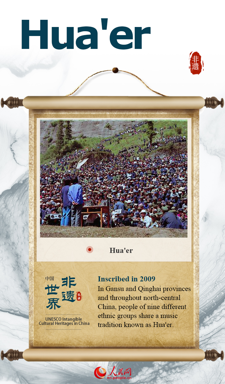 The item, "Hua'er" was inscribed on UNESCO's Representative List of the Intangible Cultural Heritage of Humanity in 2009.
