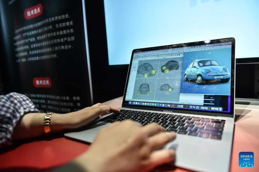 A staff member from a technology company demonstrates an AI software at an exhibition at China Science Fiction Convention (CSFC) 2023 in Beijing, capital of China, May 30, 2023. China Science Fiction Convention (CSFC) 2023 is scheduled to run in Beijing from May 29 to June 4. It is included as a sideline event of this year's Zhongguancun Forum (ZGC Forum) for the first time. Various events such as forums and sci-fi exhibitions are arranged in this year's convention. (Xinhua/Chen Zhonghao)