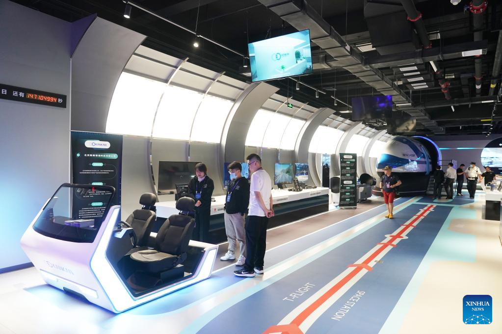 People visit an exhibition at China Science Fiction Convention (CSFC) 2023 in Beijing, capital of China, May 30, 2023. China Science Fiction Convention (CSFC) 2023 is scheduled to run in Beijing from May 29 to June 4. It is included as a sideline event of this year's Zhongguancun Forum (ZGC Forum) for the first time. Various events such as forums and sci-fi exhibitions are arranged in this year's convention. (Xinhua/Chen Zhonghao)