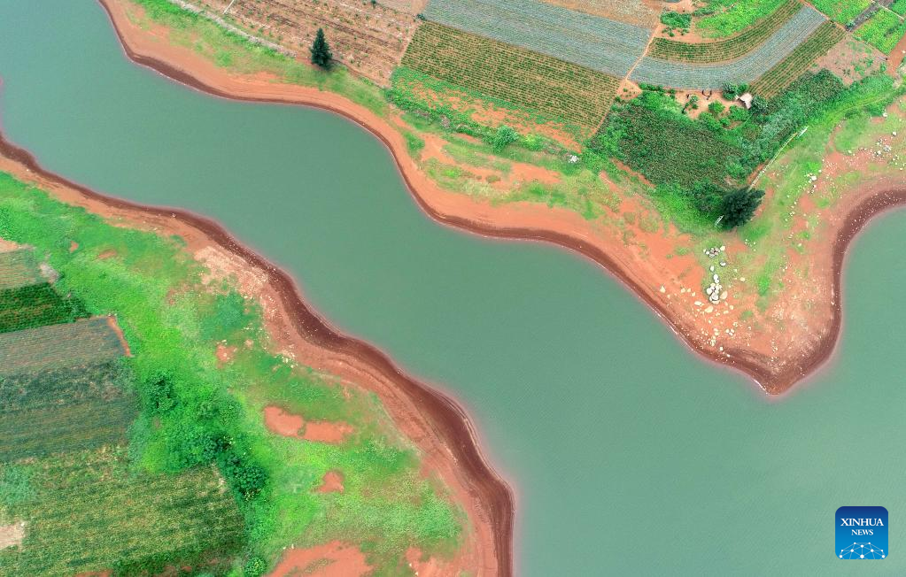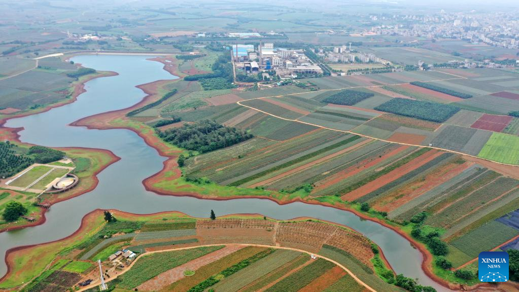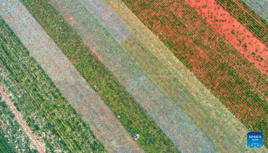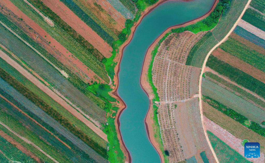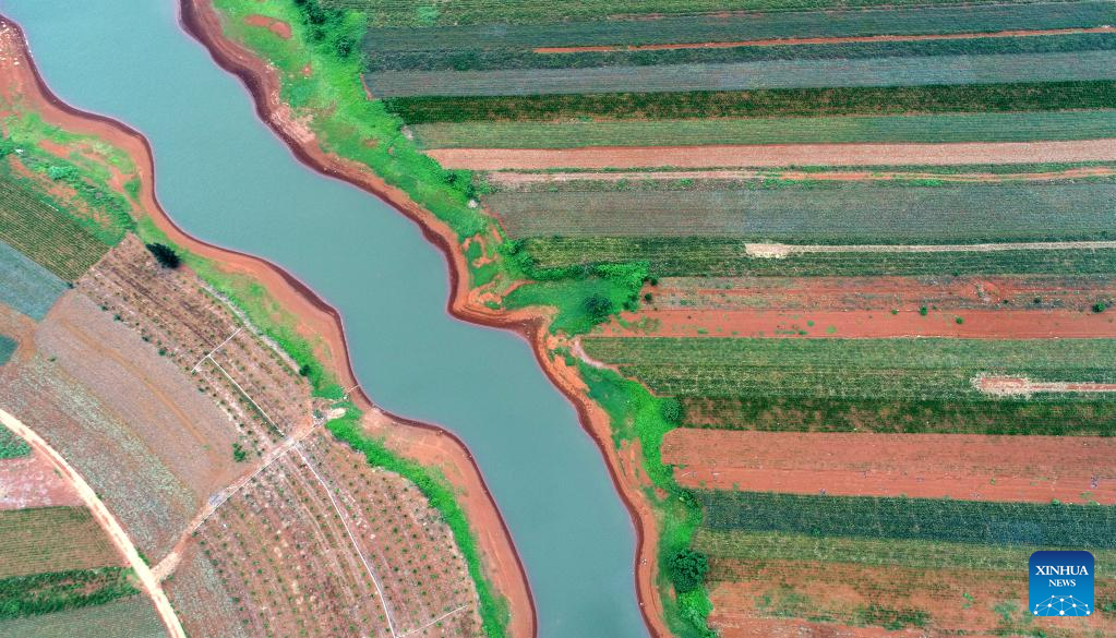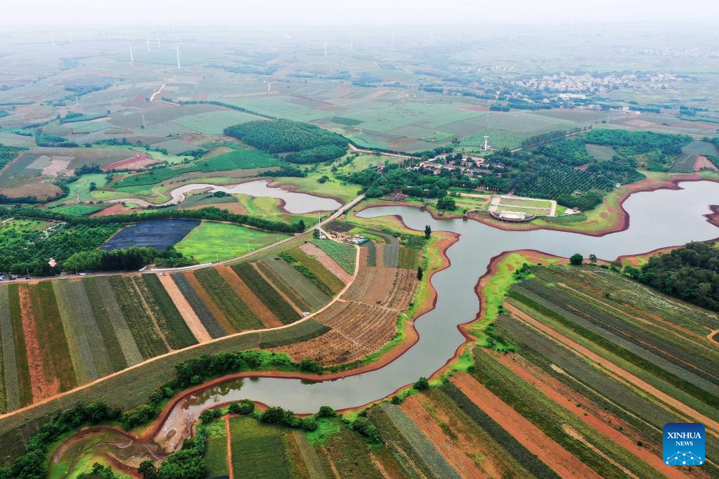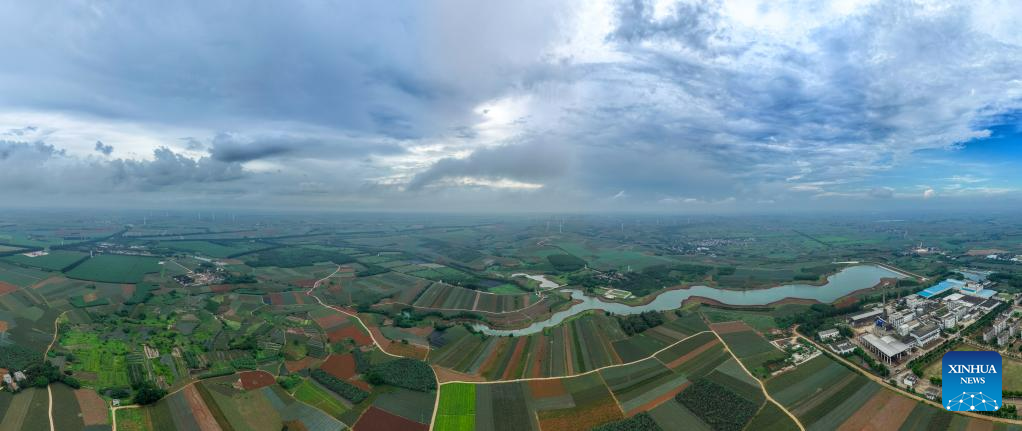 This aerial photo taken on May 26, 2023 shows the fields which are mainly planted with pineapples in Qujie Township of Xuwen County, Zhanjiang City, south China's Guangdong Province. Xuwen County is a major producer of pineapples, with a planting area of more than 350,000 mu (23,333 hectares). (Xinhua/Liang Xu)