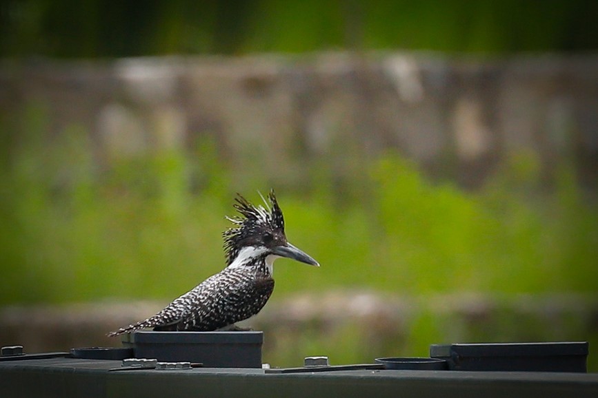 A crested kingfisher in Henan Anyang Zhanghe Canyon National Wetlands Park in Anyang city, central China's Henan Province. (Photo/Zuo Jiwen)