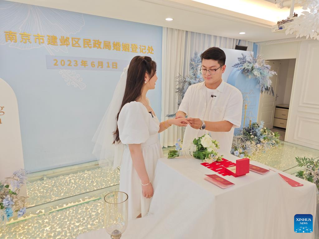 The marriage registry in Jiangning District of Nanjing, the capital of Jiangsu Province, handled 635 marriage registrations on May 20, 2023, and 40 percent of those marriages were cross-regional registrations.